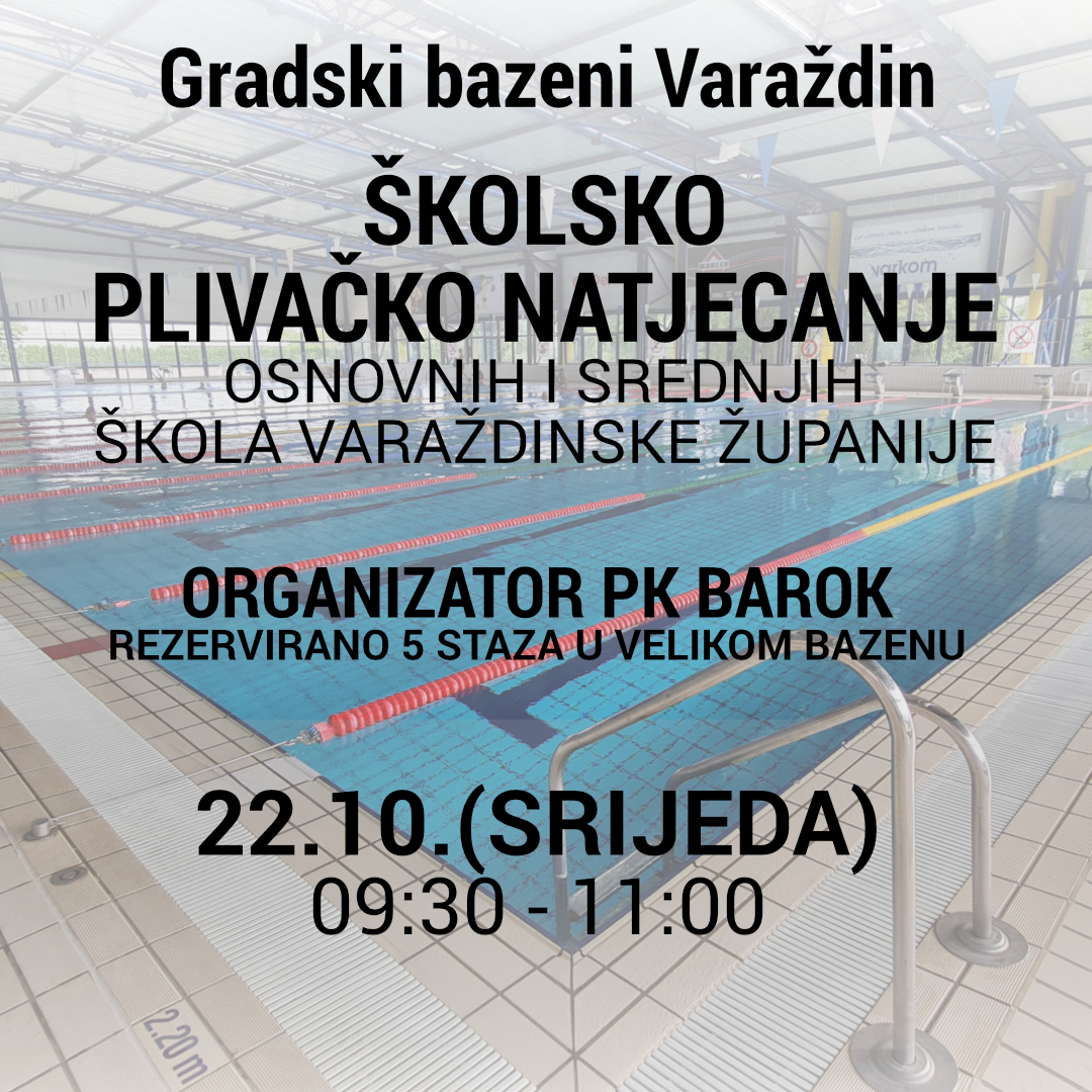 Poštovani, u srijedu, 22. listopada 2025. godine, na Gradskim bazenima Varaždin održat će se školsko plivačko natjecanje osnovnih i srednjih