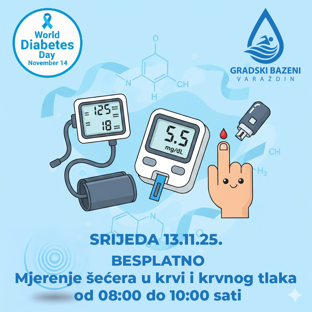 Provjerite svoje zdravlje! Besplatno mjerenje šećera i tlaka na Bazenima u četvrtak, 13.11. povodom Svjetskog dan dijabetesa 2025. Dragi