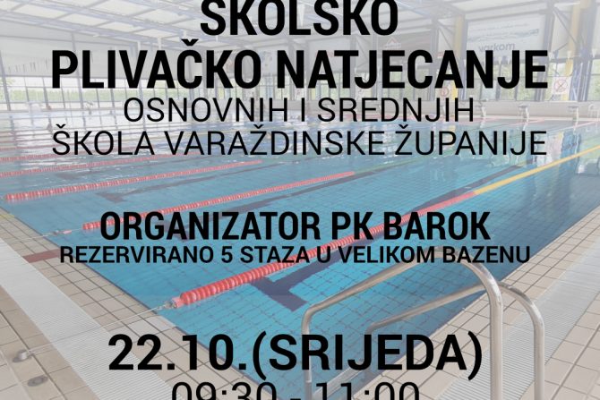 u srijedu, 22. listopada 2025. godine, na Gradskim bazenima Varaždin održat će se školsko plivačko natjecanje osnovnih i srednjih škola Varaždinske županije.